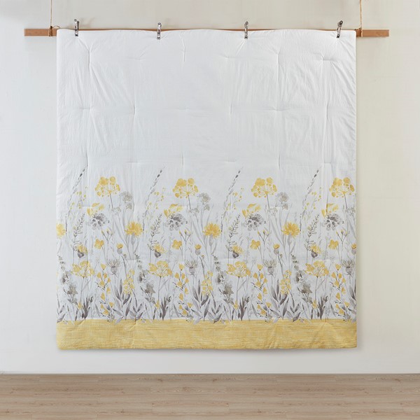 Featuring a floral print on a white ground and a yellow border at the foot, this seersucker microfiber comforter set exudes a cottage farmhouse style that adds a touch of modern to any bedroom. The two decorative pillows feature gorgeous embroidery and ruching that complements the bedding print, adding to the overall charm of the set. Colors featured in this set include shades of grey, taupe, and yellow. The comforter and pillows are filled with hypoallergenic polyester filling that is treated to be dustproof, ensuring a restful and comfortable sleeping experience.