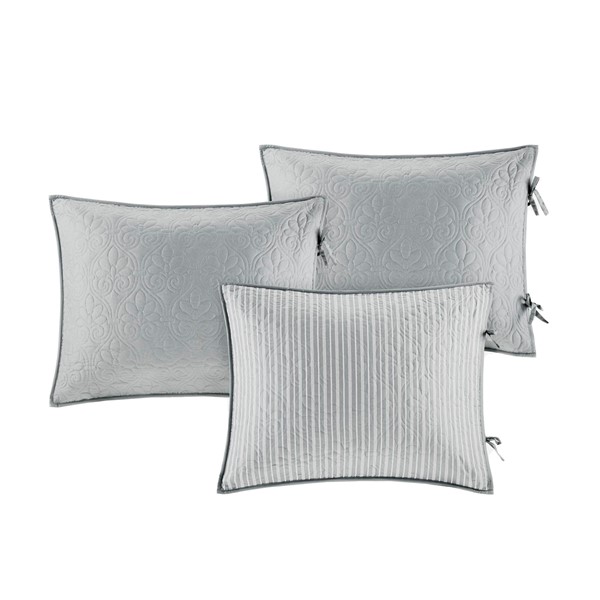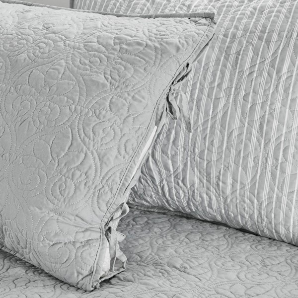 The Madison Park Quebec 6 Piece Reversible Daybed Cover Set offers a charming cottage-inspired update to your guest bedroom. The daybed cover and 3 shams flaunt a classic stitch pattern that creates a rich depth and texture on the face of the bedding set. A square decorative pillow with elegant embroidery and a striped bed skirt add the finishing touches to the daybed set. This reversible daybed cover fits a Twin size mattress and also has an antimicrobial treatment that provides built-in freshness protection, reducing the growth of odor causing bacteria to keep fabric lasting longer.