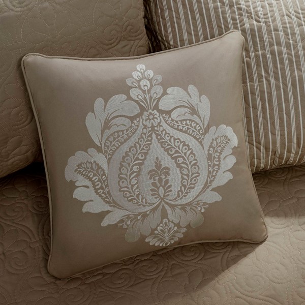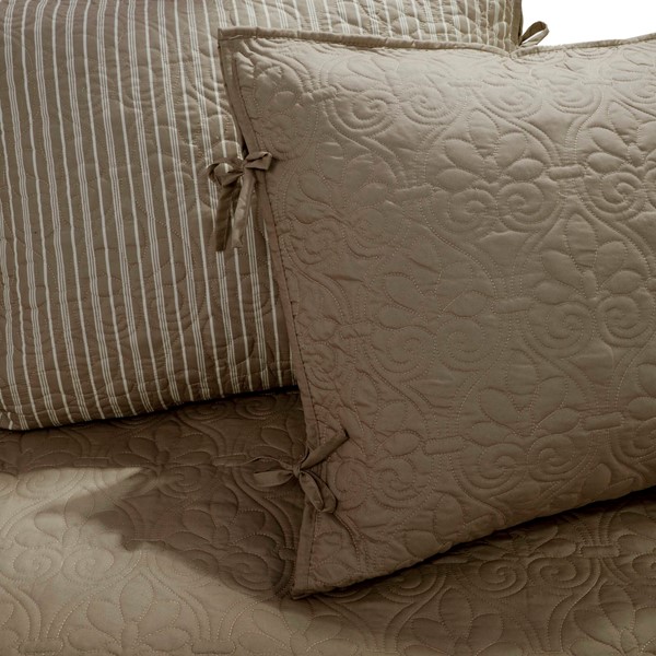 The Madison Park Quebec 6 Piece Reversible Daybed Cover Set offers a charming cottage-inspired update to your guest bedroom. The daybed cover and 3 shams flaunt a classic stitch pattern that creates a rich depth and texture on the face of the bedding set. A square decorative pillow with elegant embroidery and a striped bed skirt add the finishing touches to the daybed set. This reversible daybed cover fits a Twin size mattress and also has an antimicrobial treatment that provides built-in freshness protection, reducing the growth of odor causing bacteria to keep fabric lasting longer.