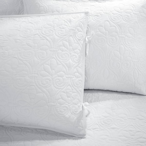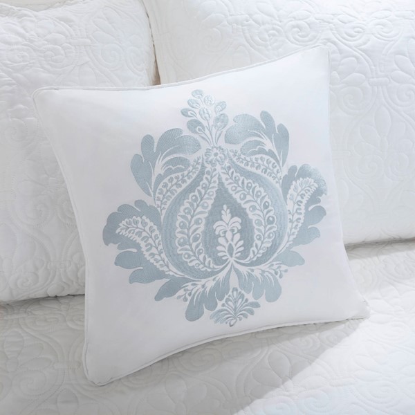 The Madison Park Quebec 6 Piece Reversible Daybed Cover Set offers a charming cottage-inspired update to your guest bedroom. The daybed cover and 3 shams flaunt a classic stitch pattern that creates a rich depth and texture on the face of the bedding set. A square decorative pillow with elegant embroidery and a solid bed skirt add the finishing touches to the daybed set. This reversible daybed cover fits a Twin size mattress and also has an antimicrobial treatment that provides built-in freshness protection, reducing the growth of odor causing bacteria to keep fabric lasting longer.