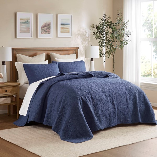 The Madison Park Quebec Reversible Bedspread Set offers a charming cottage-inspired update to your bedroom. The reversible bedspread and shams (1 in Twin/TwinXL) flaunt a classic stitch pattern that creates a rich depth and texture on the face of the bedding set. Prewashed cotton filling provides added comfort and durability, while the oversized dimensions allow the bedspread to drape better. This bedspread also has an antimicrobial treatment that provides built-in freshness protection, reducing the growth of odor causing bacteria to keep fabric lasting longer.
