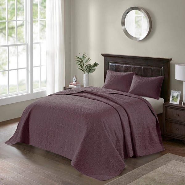 Madison Park Quebec Reversible Bedspread Set in Purple, King MP13-6154