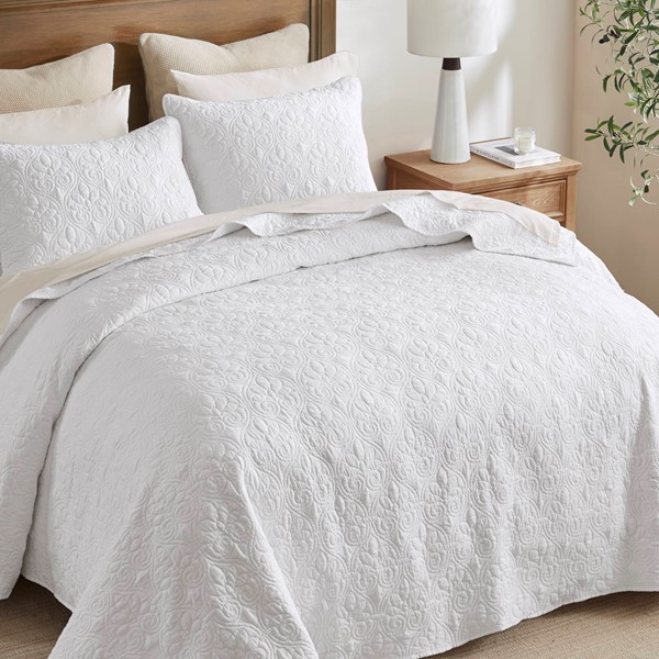 The Madison Park Quebec Reversible Bedspread Set offers a charming cottage-inspired update to your bedroom. The reversible bedspread and shams (1 in Twin/TwinXL) flaunt a classic stitch pattern that creates a rich depth and texture on the face of the bedding set. Prewashed cotton filling provides added comfort and durability, while the oversized dimensions allow the bedspread to drape better. This bedspread also has an antimicrobial treatment that provides built-in freshness protection, reducing the growth of odor causing bacteria to keep fabric lasting longer.