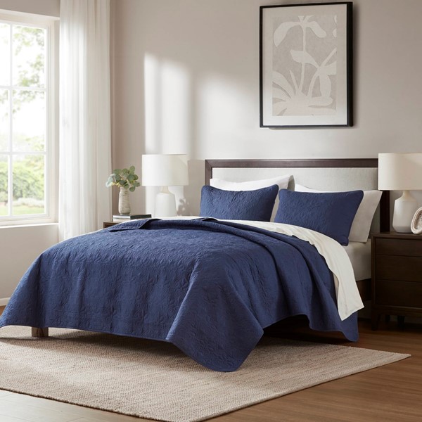 Madison Park Quebec Reversible Quilt Set in Navy, Full/Queen MP13-1686
