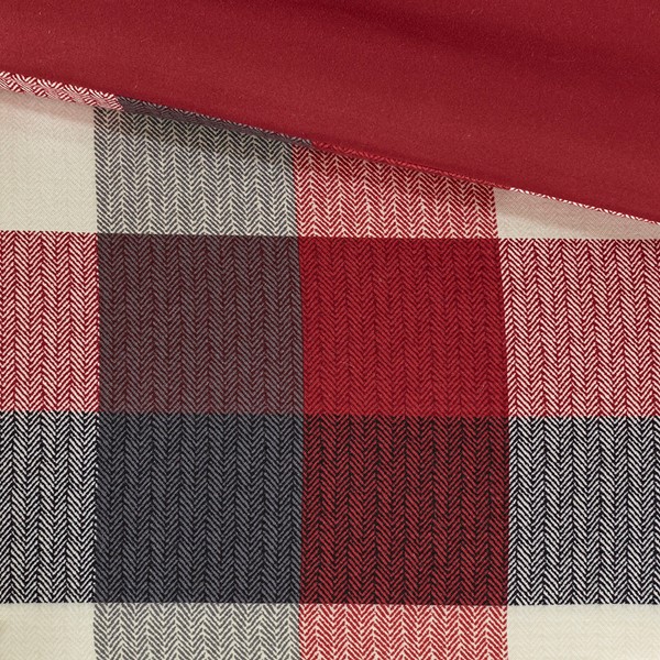 For an irresistibly warm and comfortable look, Madison Park’s Ridge 7 Piece Herringbone Comforter Set is the perfect update to your space. This rich comforter sports a bold buffalo plaid pattern that is printed on the herringbone fabric. The striking design gives way to a printed herringbone border at the foot of the bed for additional charm. Coordinating shams mimic the style of the comforter, enhancing the warm and cozy lodge aesthetic. Three decorative pillows with hand-stitched embroidered details bring texture and dimension to the top of the bed, while the print herringbone bed skirt offers a clean and handsome finish. Items in the set may come in a rolled or compressed packaging, which will need to be fluffed up or steam ironed before use to remove wrinkles.