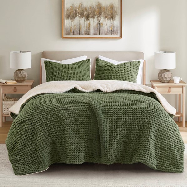 Madison Park Riordan Waffle Knit Chenille Comforter Set in Olive, Twin MP10-8886