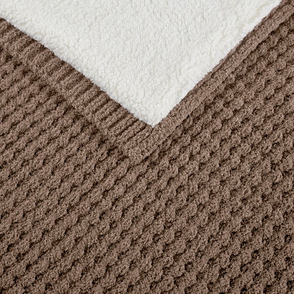 Boasting a luxurious chenille face and a cozy sherpa reverse, this throw is the perfect addition to any room in need of some extra comfort. The classic waffle weave texture adds a subtle visual charm, while the five color options ensure a match for any decor. This throw is machine washable for easy cleaning.