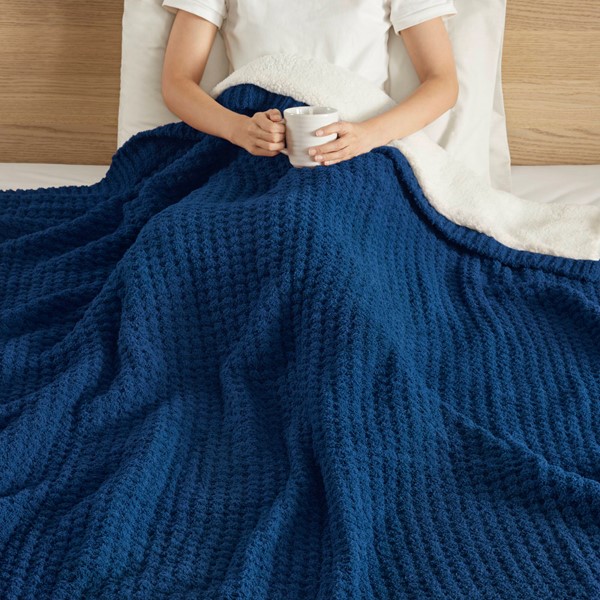 Boasting a luxurious chenille face and a cozy sherpa reverse, this throw is the perfect addition to any room in need of some extra comfort. The classic waffle weave texture adds a subtle visual charm, while the five color options ensure a match for any decor. This throw is machine washable for easy cleaning.