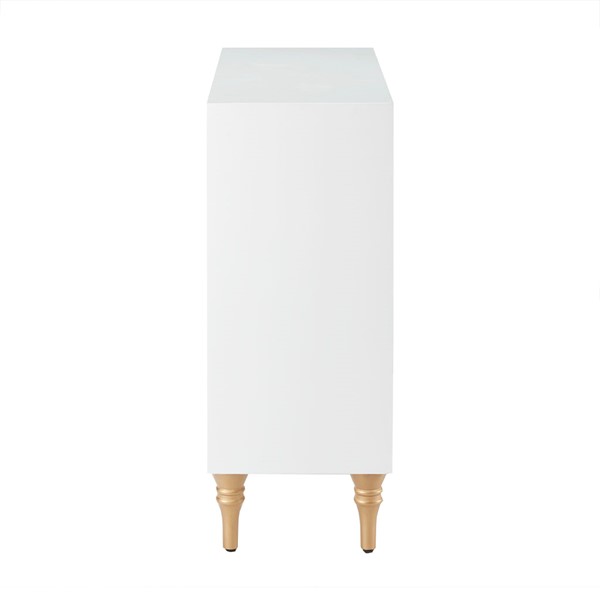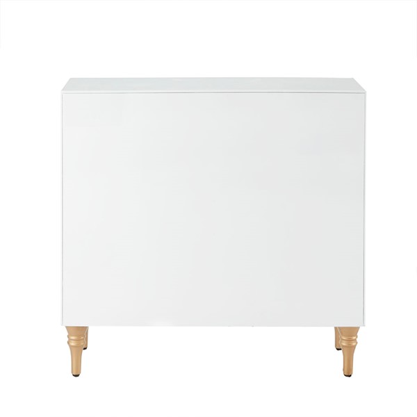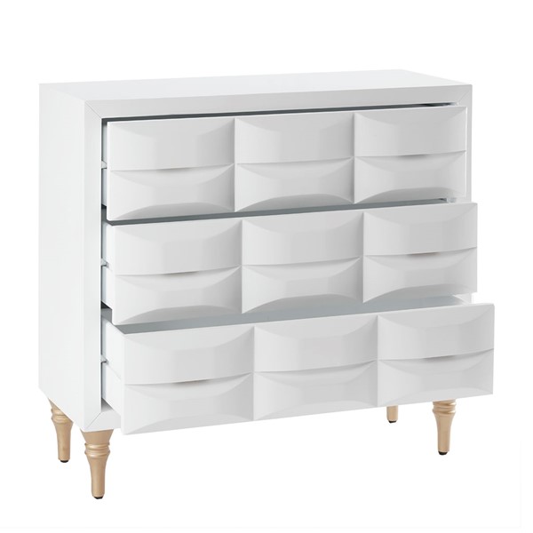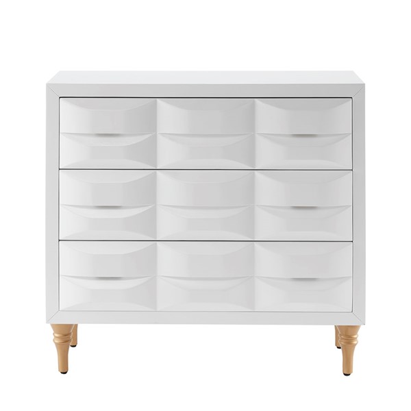 Accent your space with the Madison Park Rubrix 3 Drawer Chest. Expertly designed, this wood chest features three drawers with hidden handles that open up to reveal ample storage spaces. The white gloss finish of the chest is complemented by the gold metal finish on the legs, creating an exquisite look. Place this three drawer accent chest in your living room to bring the chic look of your decor together. Leg assembly is required. No tools are needed.
