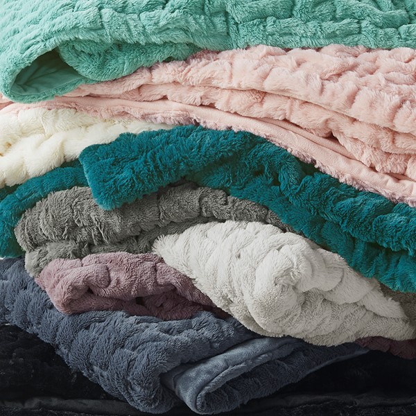 Add a modern and sophisticated touch to any space with the Madison Park Ruched Fur Throw. This throw features a solid ruched fur pattern, reversing to a faux mink to keep you warm and cozy. Machine washable for easy care, this throw is OEKO-TEX certified, meaning it does not contain any harmful substances or chemicals to ensure quality comfort and wellness.