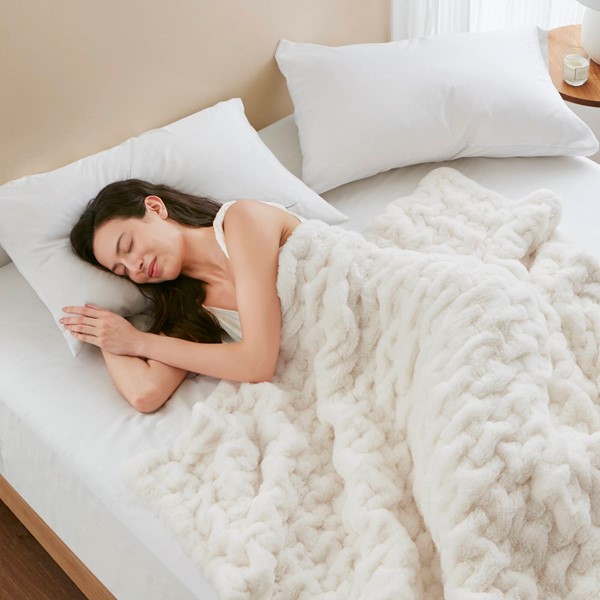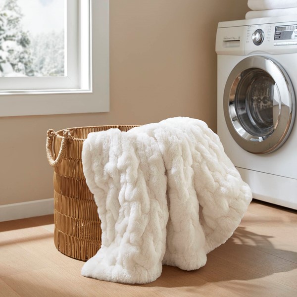 Add a modern and sophisticated touch to any space with the Madison Park Ruched Fur Throw. This throw features a solid ruched fur pattern, reversing to a faux mink to keep you warm and cozy. Machine washable for easy care, this throw is OEKO-TEX certified, meaning it does not contain any harmful substances or chemicals to ensure quality comfort and wellness.