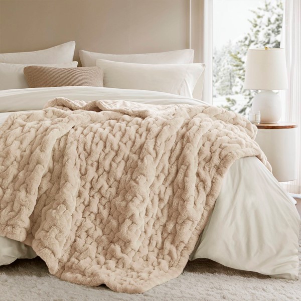 Madison Park Ruched Fur Throw in Tan, 50×60″ MP50-8801