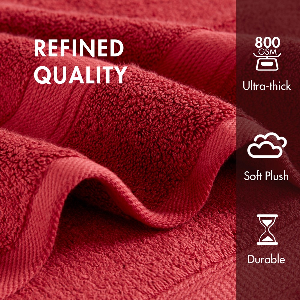 Elevate your cleaning routine with our 800GSM 100% cotton towel set, boasting a highly absorbent, plush texture. Constructed with durable double-ply loops made from thick long-staple cotton, these premium towels minimize lint and provide lasting freshness thanks to their antimicrobial treatment for a seamless bathroom experience.