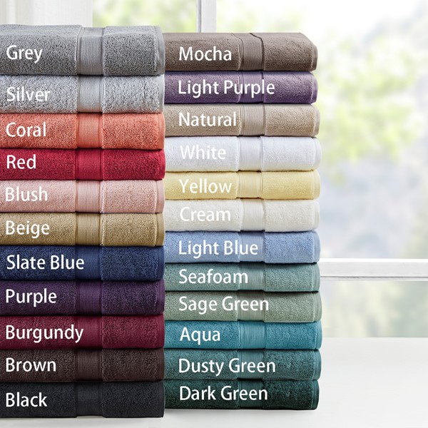 Provide a fresh update to your bathroom with our luxurious Madison Park Signature 800GSM Cotton 8PC Bath Towel Collection. This spa-like quality towel set is made of premium long staple cotton that is highly absorbent and creates a luxuriously soft feel, while the double ply loop construction increases thickness, absorbency, and ensures less lint. Each towel is finished with a silvadur antimicrobial treatment providing built in freshness protection, inhibiting growth of odor causing bacteria, and keeping linen newer, longer. Active for multiple washes, this treatment delivers long-lasting durable odor protection performance. In addition, these towels are also made in green by OEKO-TEX certified, meaning they do not include any harmful substances or chemicals while also using sustainable processes and socially responsible working conditions, for the best in quality comfort and wellness. Finished with double-stitched side hems for long lasting durability, these towels are available in a variety of colors; to easily match your decor with a complimenting color or mix and match to create a distinctive style. Set includes: 2 generously oversized 30×54" bath towels, 2 standard 16×28" hand towels, and 4 standard 13×13" wash towels. Coordinate bath sheet set in selected colors, is available and sold separately.