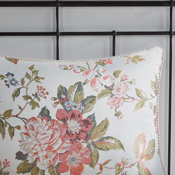 Madison Park Signature Carolyn Floral Jacquard Comforter Set with Euro Shams and Dec Pillows in Ivory, King MPS10-493