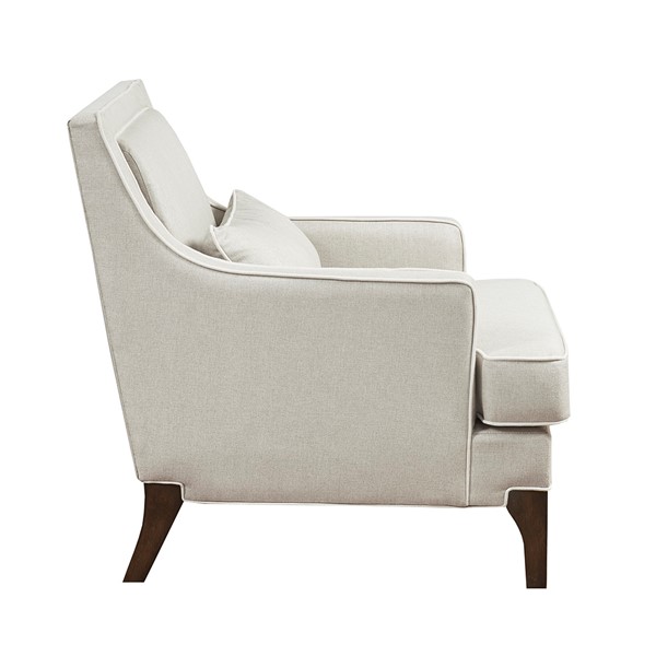 Refined and relaxed all in one chair. Cream upholstery is combined with contrasting ivory welting, for an updated look. Leg assembly required.