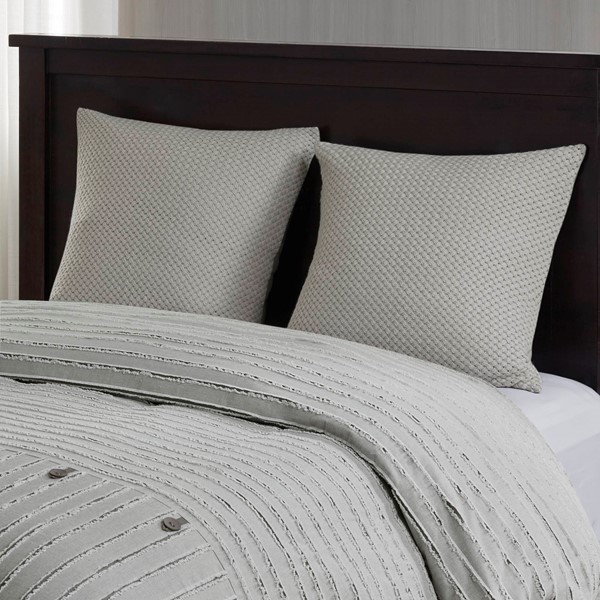 This farmhouse styled comforter brings subtle texture with its two tone striped pattern and decorative button details. The removable inserts make for easy cleaning and comfort all night.