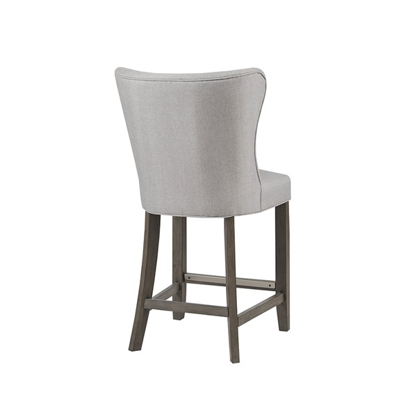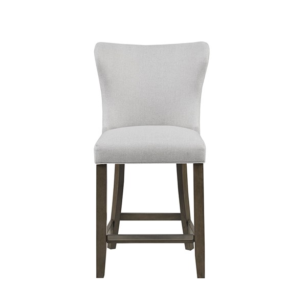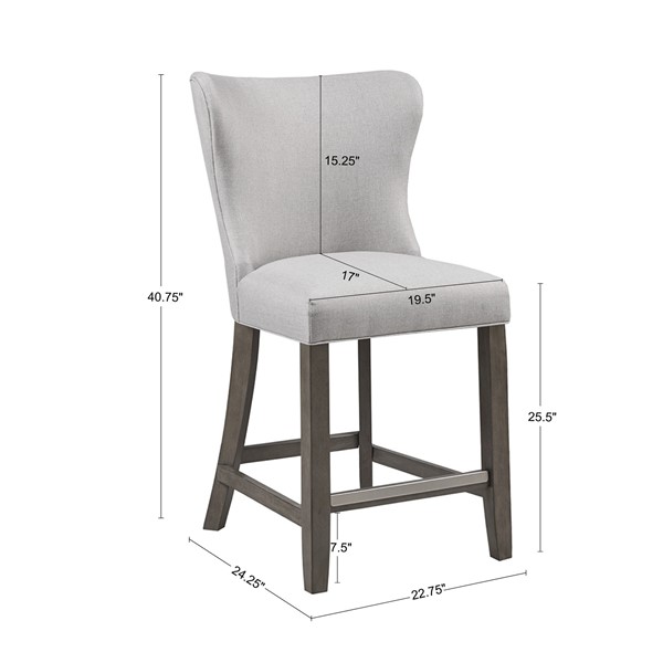 Elevate your kitchen space with the Madison Park Signature Helena 25.5" Upholstered Counter Stool. This counter stool has an upholstered seat and back, in a soft beige fabric, with a wing style back design to create a clean and elegant look.