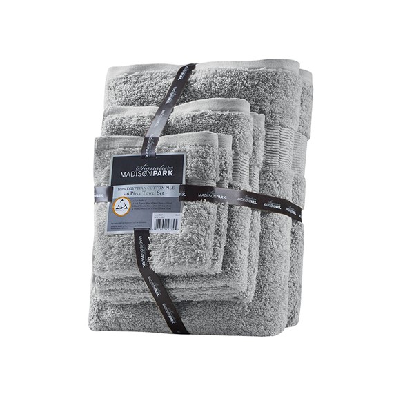 Madison Park Signature Luce 100% Egyptian Cotton 6 Piece Towel Set in Grey, 6-Piece MPS73-476