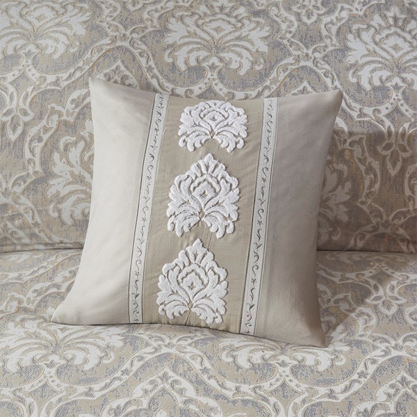 * Textured fabric embroidered decorative pillows have removable cover with hidden zipper