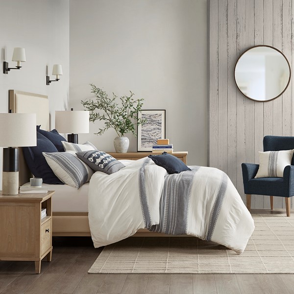 Create a cozy farmhouse dream with the Madison Park Signature Murphy duvet-style comforter. Crafted from soft cotton jacquard, this comforter set includes 2 matching shams and 2 waffle euro shams (3 for king size), alongside 3 decorative pillows, all designed to create a warm, inviting atmosphere. Adding an extra level of comfort and texture, the waffle euro shams and throw pillows are perfect for those who appreciate attention to detail. The three decorative pillows come with removable covers that can be easily cared for and feature hidden zipper closures for a seamless aesthetic. Included in this bedding set is an overfilled insert which is firmly held in place by inner ties and concealed button closures. Filled with hypoallergenic polyester, the insert is free from allergens and has been treated to ensure it is dustproof, providing you with a comfortable sleep. For maintenance, we recommend dry cleaning the comforter cover and machine washing the inserts, ensuring your bedding remains fresh and inviting for years to come.