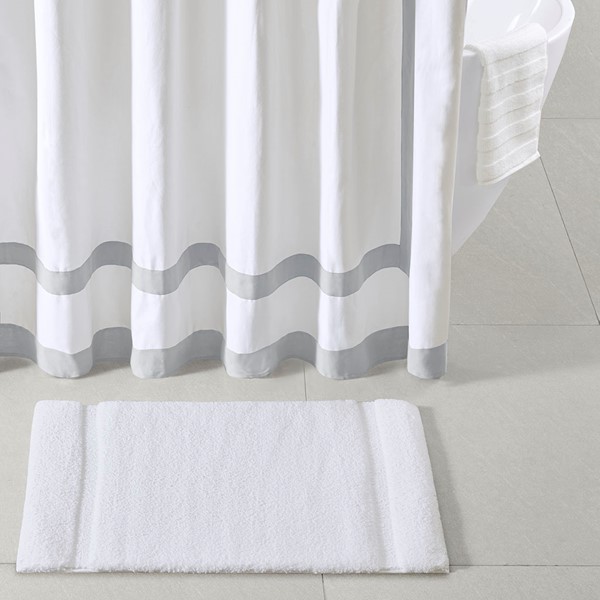Madison Park Signature Stria Border Stripe Marshmallow Bath Rug in White, 20×30" MPS72-358