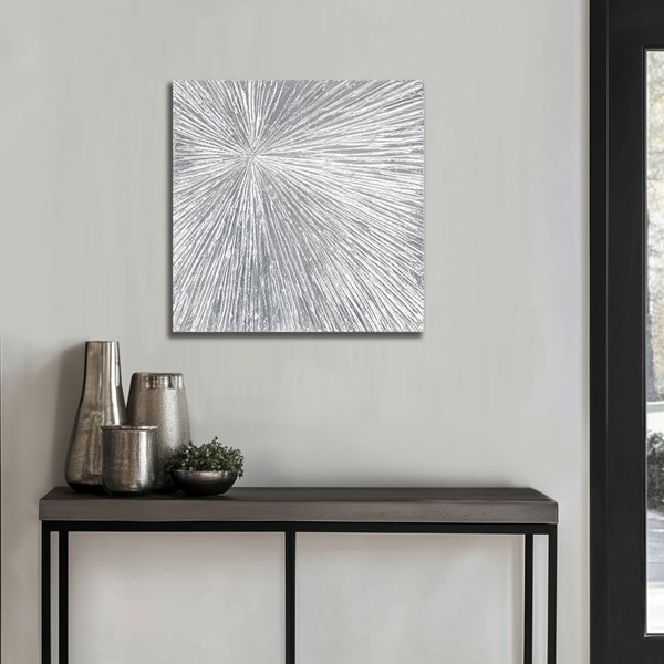 Transform your space with the Madison Park Signature Sunburst Wall Art. This stunning hand-painted resin wall art set features a modern abstract sunburst design, bringing bold energy and sophistication to any room. The intricate texture detail, combined with a metallic finish, adds depth and dimension, making it a true statement piece. Crafted with heavy texture and a luxurious metallic sheen, this wall art is perfect for adding a touch of contemporary elegance to your living room, bedroom, or hallway. The two D-ring hangers ensure easy and secure mounting, making installation simple and effortless. This piece is a beautiful and striking addition to your home, elevating the atmosphere with its unique style and artistic flair.