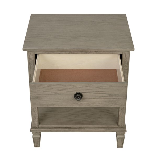 The Victoria Nightstand by Madison Park Signature blends timeless design with everyday function. Made of wood with a hand-applied finish, it features a smooth-gliding drawer with a metal knob and an open lower shelf to keep items organized. Visible wood grain and tapered legs add warmth and charm. Use as a small nightstand, end table, or side table in the bedroom, living room, or beside a couch. Its versatile style fits traditional, farmhouse, or coastal homes. Complete your space with this elegant accent.