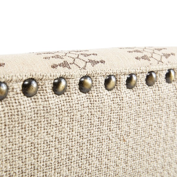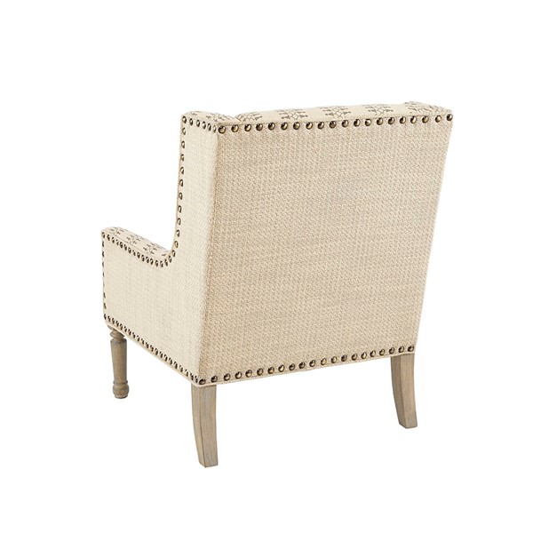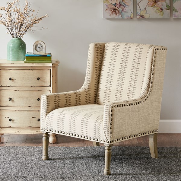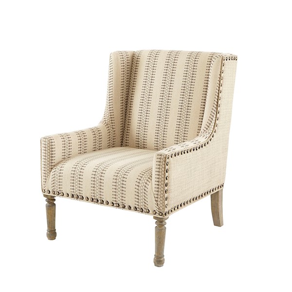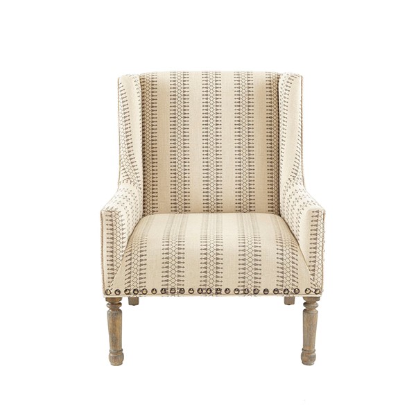 Give your living space a charming farmhouse touch with the Madison Park Simmons Accent Chair. This wing-back style chair is upholstered in a natural and tan fabric that creates a rich contrasting look. A bronze nail head trim adorns the front of the chair adding an elegant accent, while turned solid wood legs with a reclaimed natural finish complement the design. Incorporate this farmhouse style accent chair into your living room and enjoy its simple and charming comfort. Leg assembly is required and tools are included for your convenience.