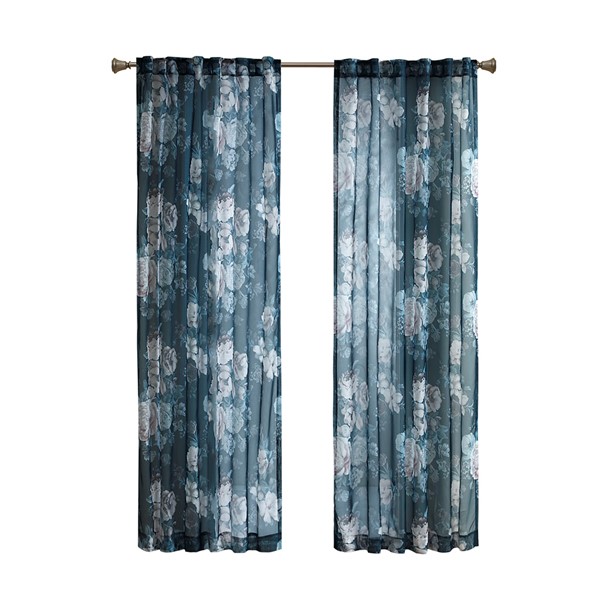 The Madison Park Simone Printed Floral Rod Pocket and Back Tab Top Voile Sheer brings a soft and romantic touch to your home decor. This voile sheer curtain panel features a beautiful blush and neutral printed floral on a dark navy ground for a rich and stylish contrast, while the lightweight fabric adds a delicate and airy touch. Simply hang on rod pocket top or back tabs for a more tailored look; Fits up to a 1.25" diameter standard size rod. This voile sheer is also OEKO-TEX certified, meaning it does not contain any harmful substances or chemicals, ensuring quality comfort and wellness. Each panel is sold separately and machine washable for easy care. These curtains are perfect on its own as a decorative sheer or even better when layered with either coordinating scarf or any solid panels for a more intricate update!