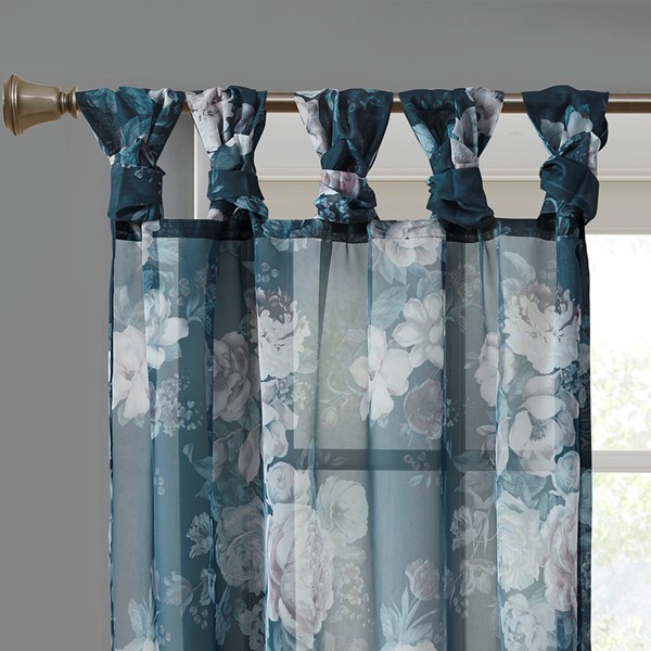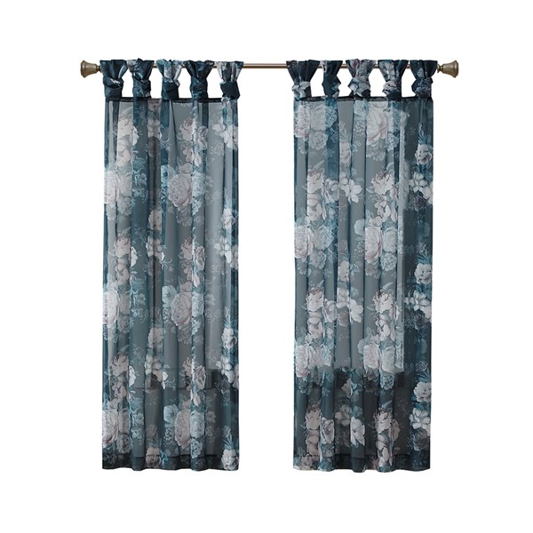 The Madison Park Simone Printed Floral Twist Tab Top Voile Sheer brings a soft and romantic touch to your home decor. This voile sheer curtain panel features a beautiful blush and neutral printed floral on a dark navy ground for a rich and stylish contrast, while the lightweight fabric adds a delicate and airy touch. Our twist tab top finish allows you to create a DIY design for a unique and stylish touch to your window decor; assembly required for twist tabs – printed directions are included in packaging and video support also available onsite. Each panel is sold separately and machine washable for easy care; Fits up to a 2" diameter curtain rod. These curtains are perfect on its own as a decorative sheer or even better when layered with either coordinating scarf or our Madison Park Emilia solid twist tab panels for a more intricate update!
