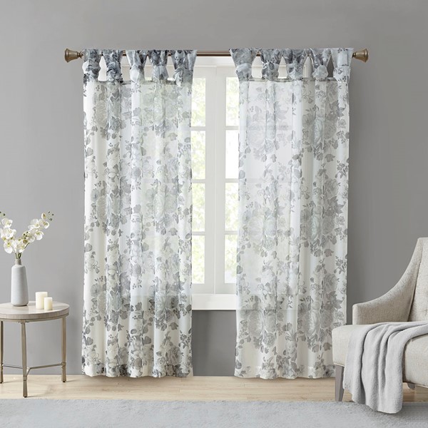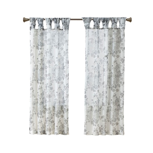 The Madison Park Simone Printed Floral Twist Tab Top Voile Sheer brings a soft and romantic touch to your home decor. This voile sheer curtain panel features a beautiful neutral printed floral on a white ground for a rich and stylish contrast, while the lightweight fabric adds a delicate and airy touch. Our twist tab top finish allows you to create a DIY design for a unique and stylish touch to your window decor; assembly required for twist tabs – printed directions are included in packaging and video support also available onsite. Each panel is sold separately and machine washable for easy care; Fits up to a 2" diameter curtain rod. These curtains are perfect on its own as a decorative sheer or even better when layered with either coordinating scarf or our Madison Park Emilia solid twist tab panels for a more intricate update!