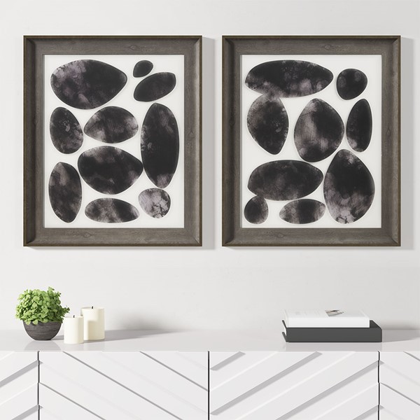 Madison Park Skipping Stones Geo UV Printed Shadowbox 2 Piece Wall Art Set in Black MP95G-0282