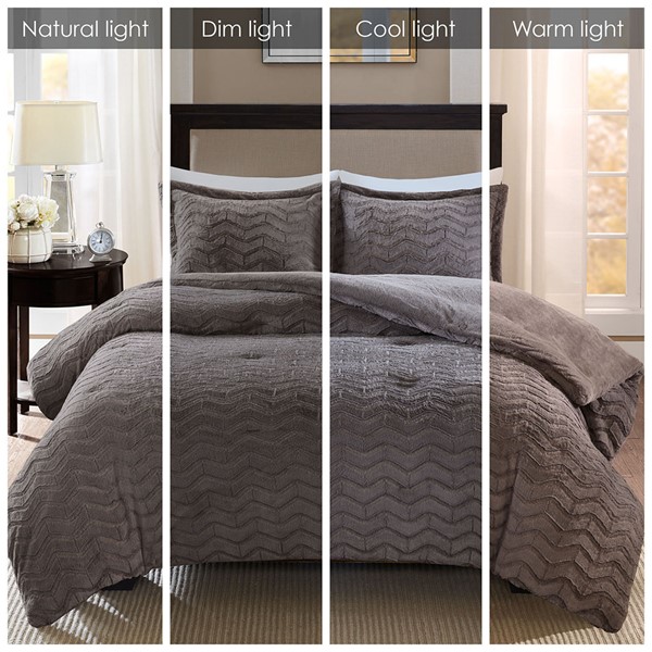 Add warmth and comfort to your bed with this plush down alternative comforter. The plush fabric is incredibly soft and features a chevron pattern for added texture and dimension. The set includes 1 comforter and 2 shams and is machine washable for easy care and OEKO-TEX certified, meaning it does not contain any harmful substances or chemicals to ensure quality comfort and wellness.