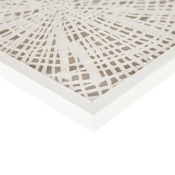 For a subtle coastal touch, the Madison Park Solana Framed Abstract Coastal Rice Paper 3-piece Shadowbox Wall Decor Set is the perfect addition to any decor. Each shadow box features an abstract costal motif made out of handmade rice paper in an off white tone, for a natural and unique design. Finished under glass with a white frame detailing for a gallery look and feel, each piece also features 2 D-rings on the reverse making this 3 Piece set easy to hang in any space. Simply hang this set together for a large focus wall decor or hang pieces separately to fit any space and tie a room together. Spot clean only.