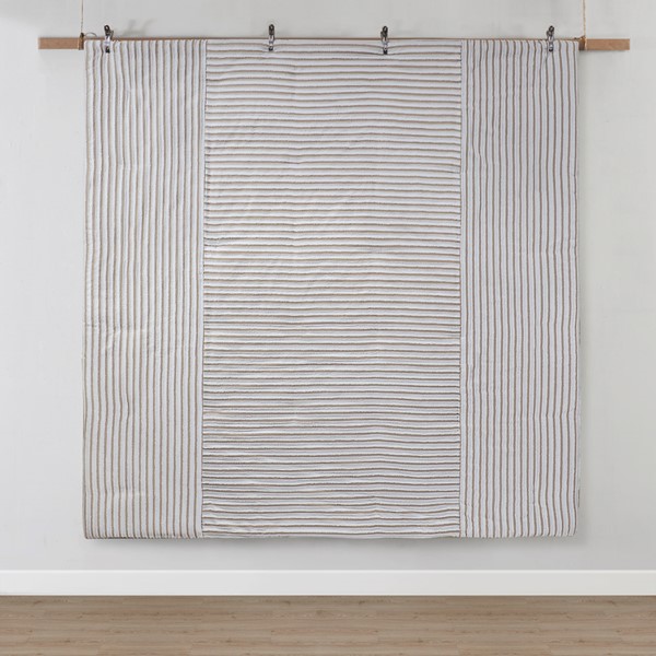 * Casual farmhouse style clip jacquard design in a white and natural two tone stripe effect