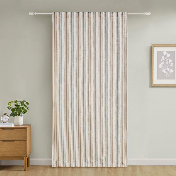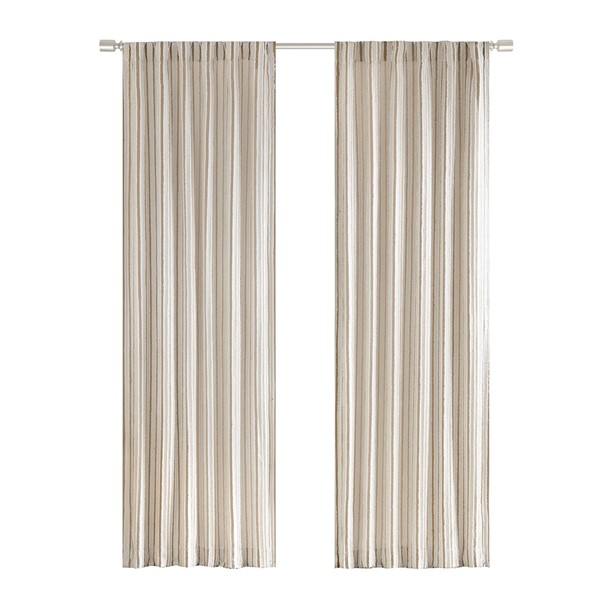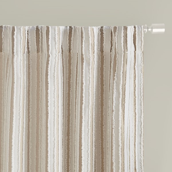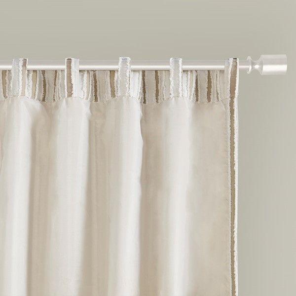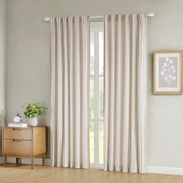 Experience the perfect blend of rustic charm and modern elegance with our Madison Park Taylor window panel. This Casual Farmhouse Style window panel showcases an unique pieced clip jacquard pattern in a striking white and natural two-tone stripe effect, adding depth and character to any room. The textured design is fashioned from durable polyester cationic dye clipped jacquard, ensuring longevity and ease of maintenance. With its light-filtering capabilities, this window panel artfully balances privacy and natural light, creating a warm, inviting ambiance. Finished with a rod pocket and back tab, it is designed for easy hanging and adjustments. Whether you’re revamping your living space or simply want to add a touch of farmhouse charm, this window panel is an excellent choice. Window panels sold individually; 2 panels are reccomended for standard coverage. Coordinating bedding available and sold separately.