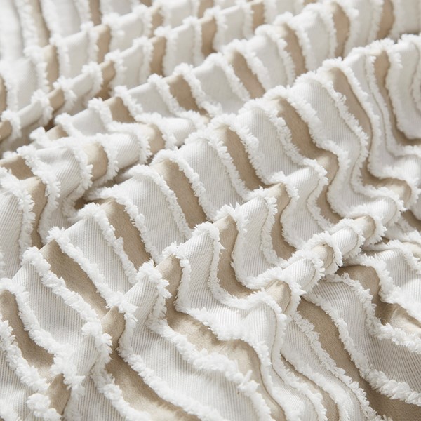 * Casual Farmhouse style clip jacquard design in a white and natural two tone stripe effect