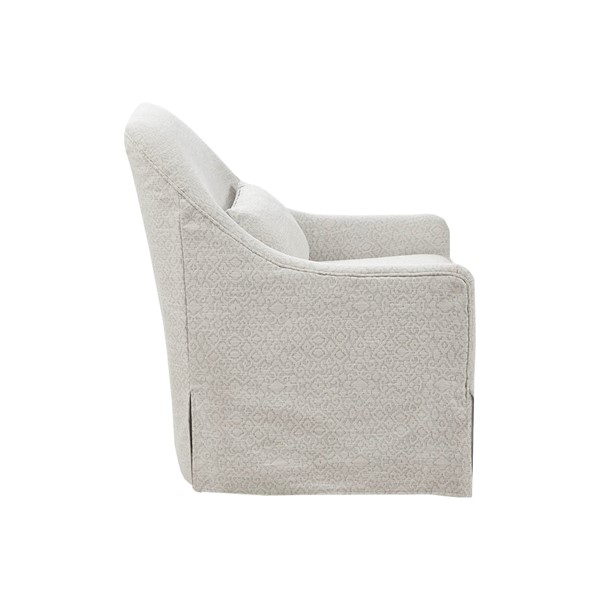 Sit back and relax in the comfort of the Madison Park Theo Swivel Glider Chair. The soft, rich-hued fabric and flared arms of this swivel glider chair creates a charming farmhouse look. A lumbar pillow and the removable seat cushion provide exceptional comfort and support. Able to fully rotate 360 degrees with the swivel base, this swivel glider chair gives your living space the perfect touch of comfort and style. Assembly is not required.