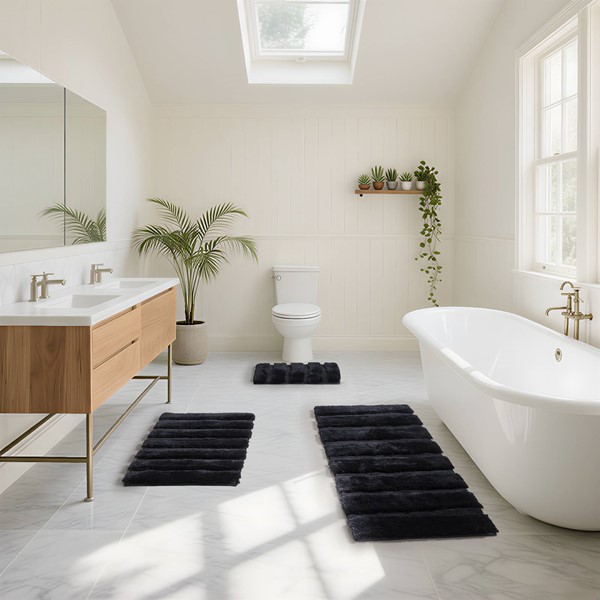 Transform your bathroom into a simple and stylish haven with our Madison Park Tufted Pearl Channel Rug. This solid tufted bath rug features a high-low stripe design with a light sheen and luster that adds rich dimension and texture for the perfect shabby chic touch your bathroom decor. Constructed from 100% macro-spun polyester fibers, each tufted bath rug is also durable for long-lasting, incredibly soft. Machine washable for easy care and available in a soft palette of fade and stain resistant colors, this tufted bath rug is the perfect addition to complete any bathroom decor!