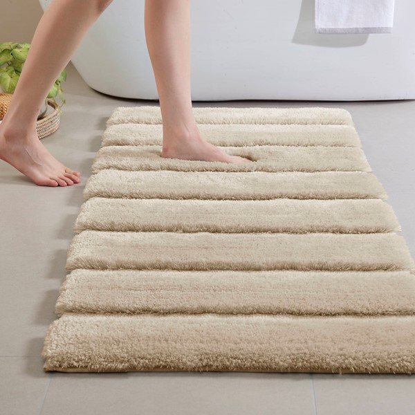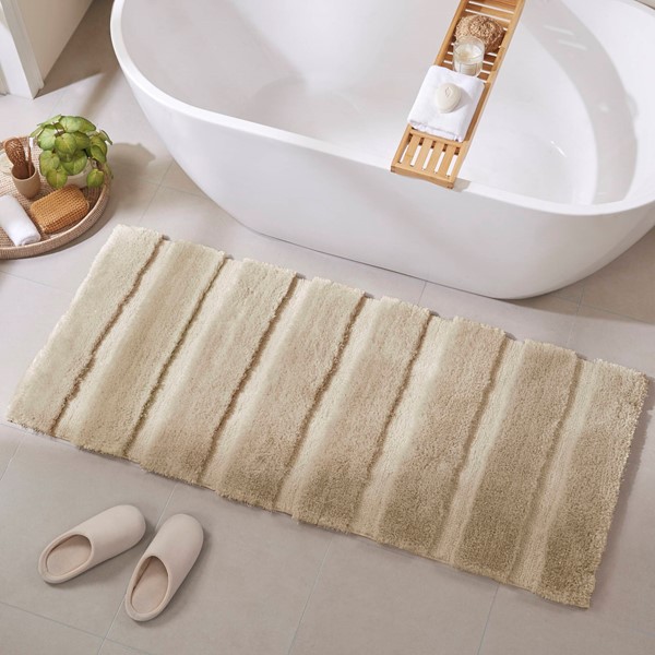 Transform your bathroom into a simple and stylish haven with our Madison Park Tufted Pearl Channel Rug. This solid tufted bath rug features a high-low stripe design with a light sheen and luster that adds rich dimension and texture for the perfect shabby chic touch your bathroom decor. Constructed from 100% macro-spun polyester fibers, each tufted bath rug is also durable for long-lasting, incredibly soft. Machine washable for easy care and available in a soft palette of fade and stain resistant colors, this tufted bath rug is the perfect addition to complete any bathroom decor!