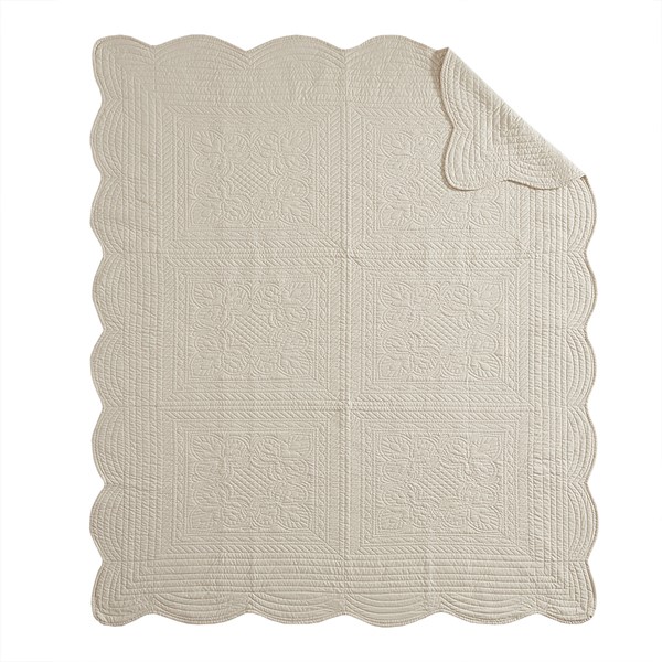 Tuscany is the perfect quilted throw for a new solid look. The decorative stitch pattern pairs easily with your existing decor and will sure to add a new decorative element with the beautiful scalloped edges. This quilted throw is filled with cotton filling and features a polyester microfiber fabrication on the face and the reverse. Its prewashed finish gives a worn in appearance to this decorative throw.