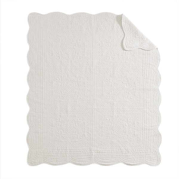 Tuscany is the perfect quilted throw for a new solid look. The decorative stitch pattern pairs easily with your existing decor and will sure to add a new decorative element with the beautiful scalloped edges. This quilted throw is filled with cotton filling and features a polyester microfiber fabrication on the face and the reverse. Its prewashed finish gives a worn in appearance to this decorative throw.