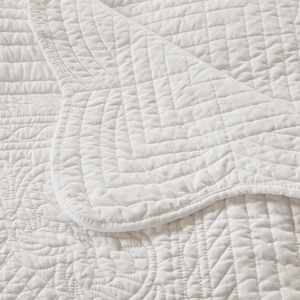 I purchased the white full/queen size quilt/coverlet and am extremely satisfied with it. It serves as a perfect throw for my pets to keep them off my more expensive duvets and coverlets, and I was pleasantly surprised to find a matching throw. It adds a lovely touch to my bed.