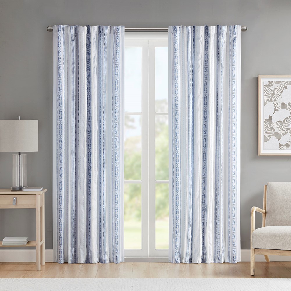 2 reviews for Madison Park Veronica Poly Printed Curtain Panel with Tufted Stripe and Lining in White/Navy, 50×95″ MP40-8463