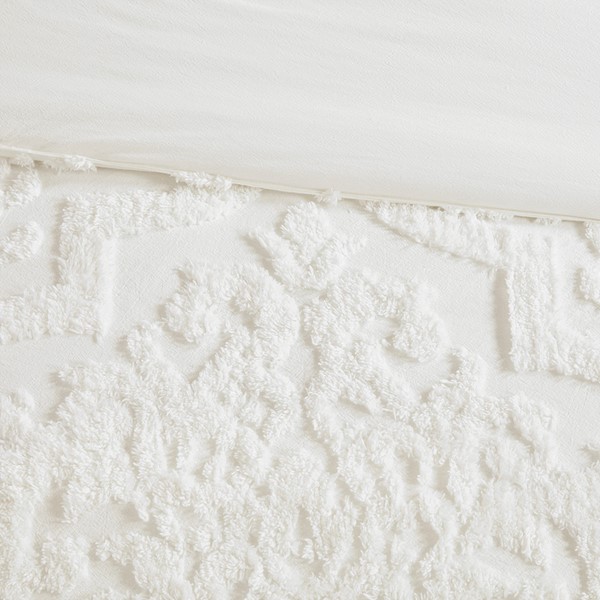 The Madison Park Viola 3 Piece Tufted Cotton Chenille Damask Comforter Set offers the perfect cottage touch to your bedroom decor. A tufted chenille damask design is beautifully displayed on the 100% cotton comforter and matching shams, for a soft shabby chic look. Machine washable for easy care, this bedding set is OEKO-TEX certified, meaning it does not contain any harmful substances or chemicals to ensure quality comfort and wellness. Due to the nature of the chenille fabric, some shedding will occur naturally in the first 3-4 washes.