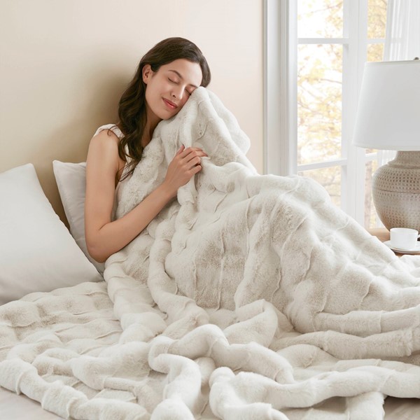 This faux fur throw combines the best of luxury and warmth for your living room. The fur face features a textured basket weave pattern, while the neutral color options create a beautiful and stylish aesthetic to complement any decor. This throw is machine washable for convenient cleaning, and Oeko-Tex certified to ensure quality comfort and wellness.