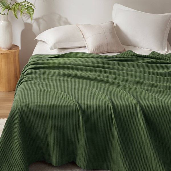 Madison Park Waffle Weave Cotton Blanket in Olive Green, Full/Queen BR51N-5007