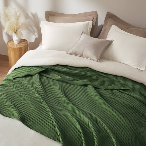 The Madison Park Waffle Weave Blanket offers an added layer of warmth and comfort to your bed or couch. Made from ultra-soft 100% cotton, this lightweight blanket features tightly woven waffle weave that reduces pilling. The waffle weave also helps reduce shrinkage after washing and the breathable cotton makes this blanket perfect for your year round warmth. Machine washable for easy care, this cotton blanket is OEKO-TEX certified, meaning it does not contain any harmful substances or chemicals to ensure quality comfort and wellness.