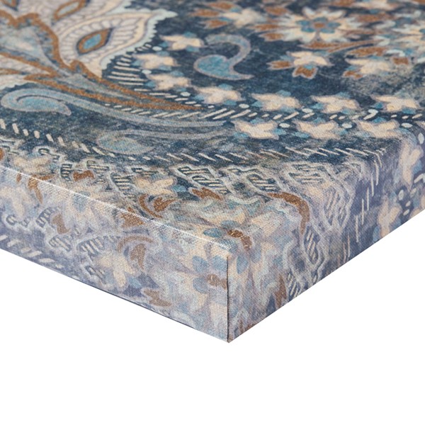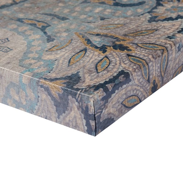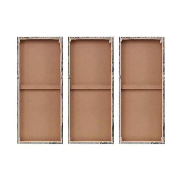 Weathered Damask Walls is a three piece set that has both pattern and surface interest in a serene blue and neutral color palette. The triptych set is printed on linen canvas and each piece is 15" x 35".